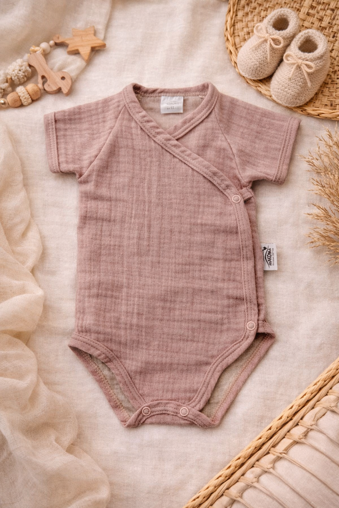 Body muślinowe Just Muslin 03235KR Makoma rose– krótki rękaw, kopertowe, 100% bawełna