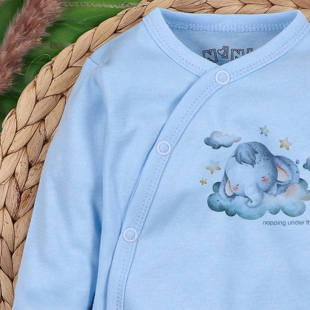 ABN-5603 Body kopertowe Nini Little Dreamers z bawełny organicznej dla niemowląt błękitne- bezniklowe napy, 100% bezpieczeństwa