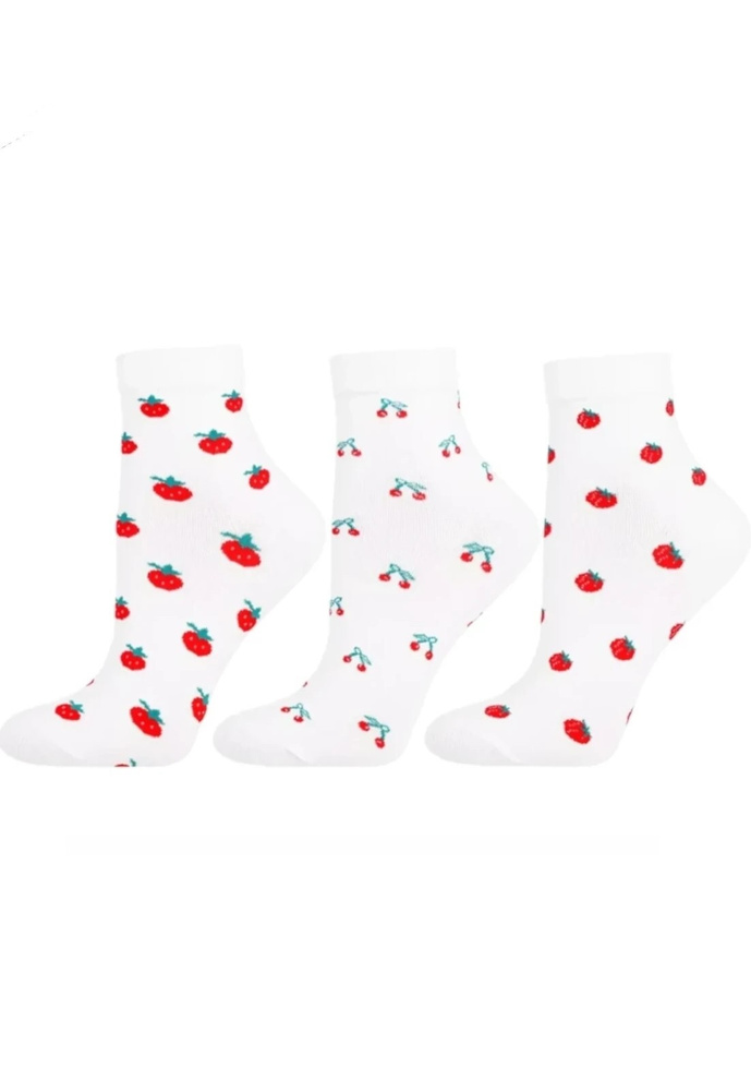 Biały kolor sprawia, że skarpetki łatwo dopasować do trampek, sneakersów czy obuwia sportowego. Owocowe wzory: truskawka, malina lub wiśnia, dodają całości lekkości i dziewczęcego charakteru. Wzór wysyłany jest losowo. To model dla kobiet, które cenią wygodę, naturalne tkaniny i drobne, stylowe detale w codziennej garderobie.