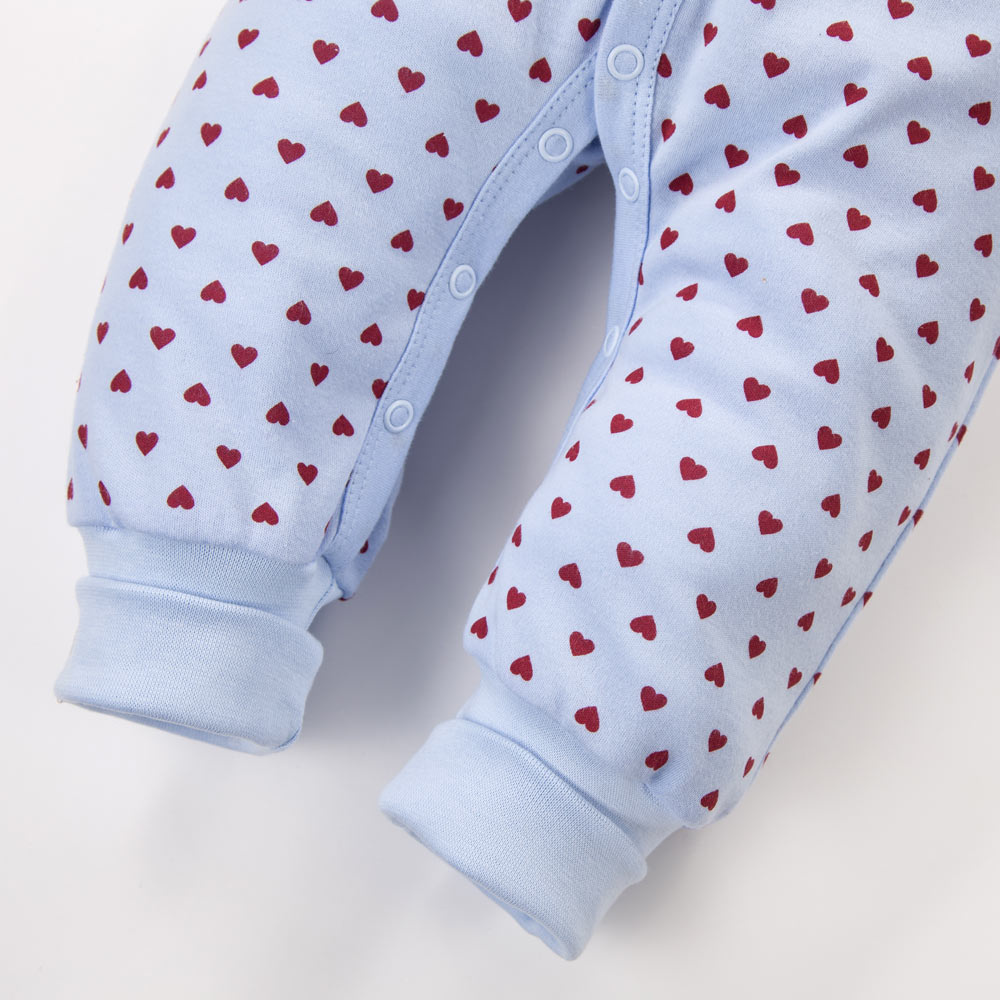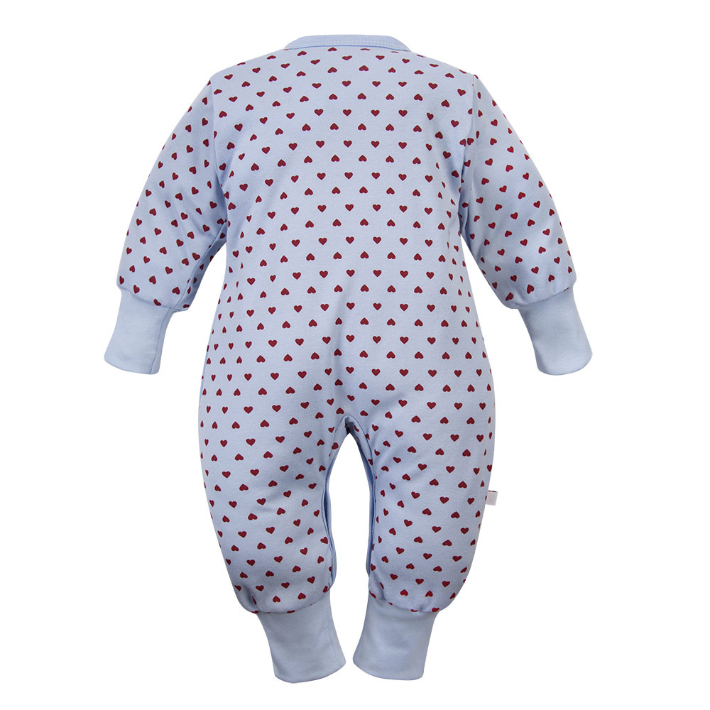 Pajac dziecięcy Love Eevi bez stópek niebieski w serca 100% bawełna