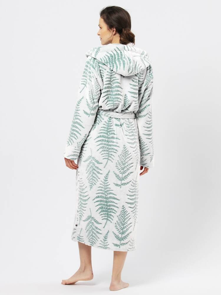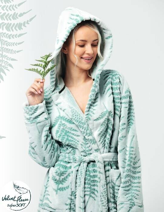 Długi szlafrok damski wykonany z miękkiej dzianiny typu soft ozdobione delikatnym wzorem