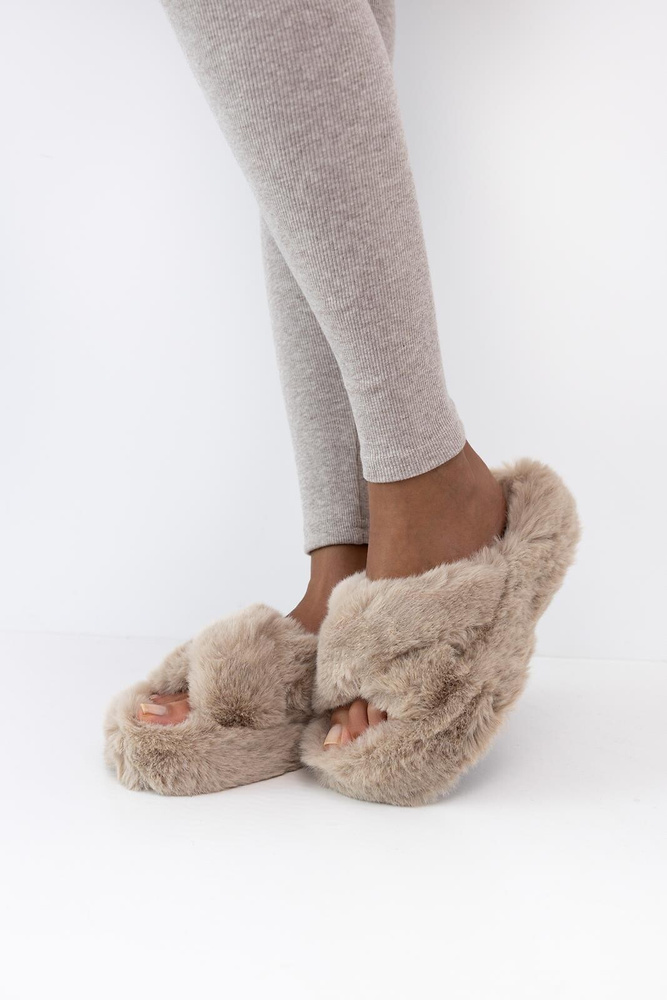 Kapcie Tori Sensis beżowe – miękkie, puchate z gumową podeszwą