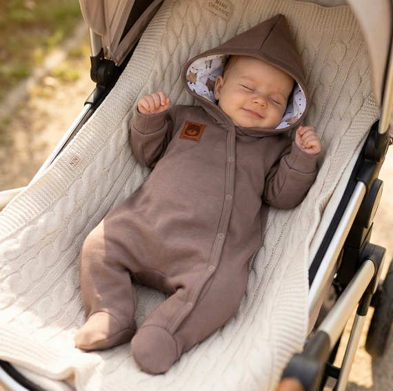 To ocieplany kombinezon niemowlęcy z bawełny organicznej, który łączy funkcjonalność, bezpieczeństwo i świadomy wybór materiałów.