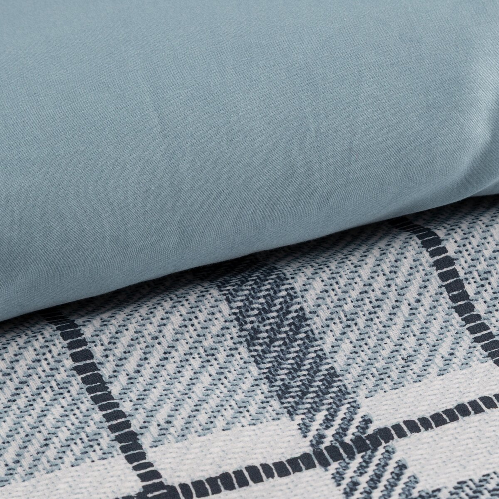 Pościel została uszyta z wysokiej jakości satyny bawełnianej o gramaturze 115 g/m². Charakterystyczny splot nadaje jej delikatny połysk i wyjątkową gładkość, dzięki czemu materiał jest przyjemny dla skóry i komfortowy przez cały rok – latem zapewnia uczucie lekkości i świeżości, zimą przyjemnie otula i utrzymuje ciepło. Nowoczesna technika nadruku rotacyjnego gwarantuje wyrazisty wzór kraty i nasycone kolory, które nie blakną w praniu. Dodatkowy proces sanforyzacji zabezpiecza tkaninę przed kurczeniem się, co jest kluczowe przy wyborze trwałej pościeli bawełnianej.