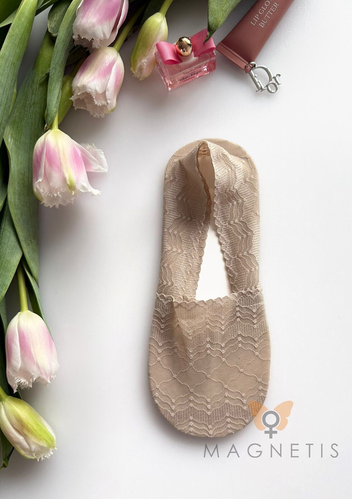 • Baleriny damskie Magnetis z elastycznej koronki to wygodne, niemal niewidoczne stopki do balerin, mokasynów i sneakersów. Silikonowy pasek zapobiega zsuwaniu się, a bawełniana podeszwa zwiększa komfort noszenia. Idealne na co dzień.