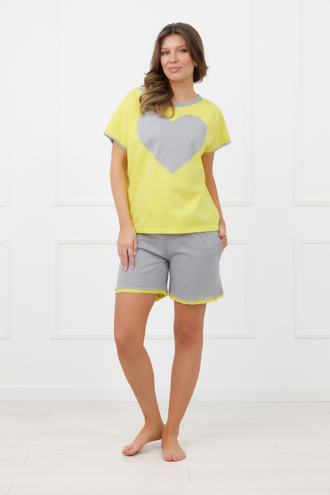 Piżama Sabrina Italian Fashion 100% bawełna – krótki rękaw, szorty- żółty