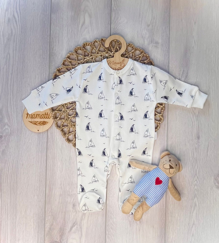 Mamatti Pajacyk PA16040 Statki – bawełniany pajacyk niemowlęcy do snu