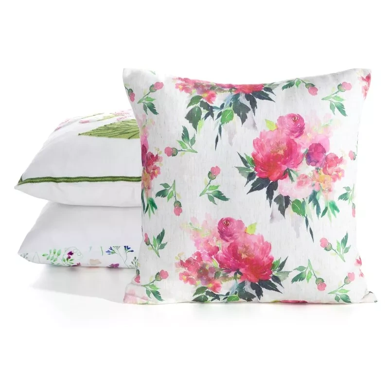 Eurofirany Wiosna 66– poszewka wielkanocna dekoracyjna zielona różowa kwiaty