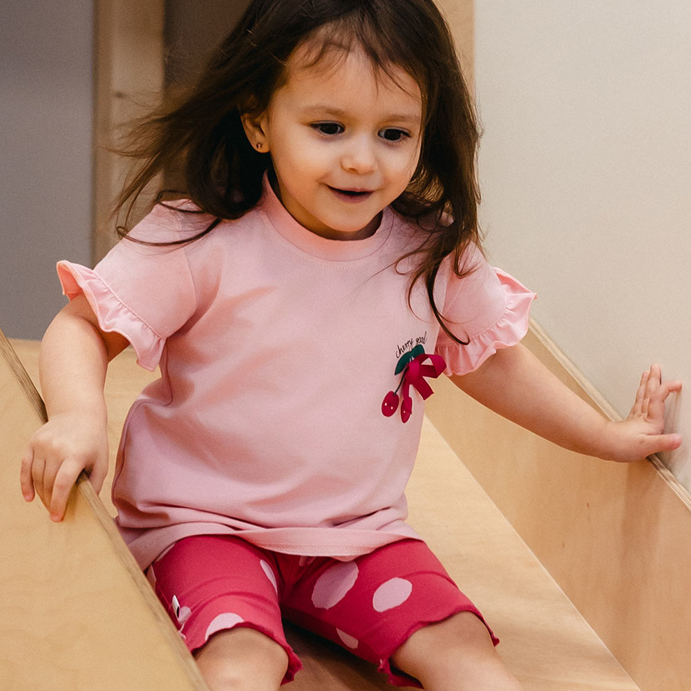 Dla kogo idealne? Dla dziewczynek, które potrzebują wygodnych spodenek na lato i aktywny dzień – lekkich, przewiewnych i bezpiecznych dla skóry. Przy wyborze rozmiaru warto kierować się wzrostem dziecka – elastyczny materiał daje pewien zapas dopasowania. Aby zachować jakość, zalecamy pranie w 30°C i unikanie wysokich temperatur suszenia.