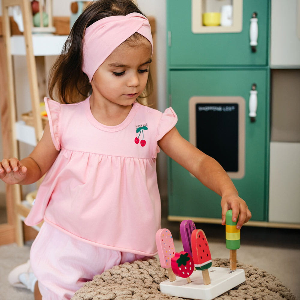 • Urocza body tunika dla dziewczynki w różu z wisienkami – miękka bawełna i wygodny krój na co dzień. Idealna na lato i aktywny dzień.