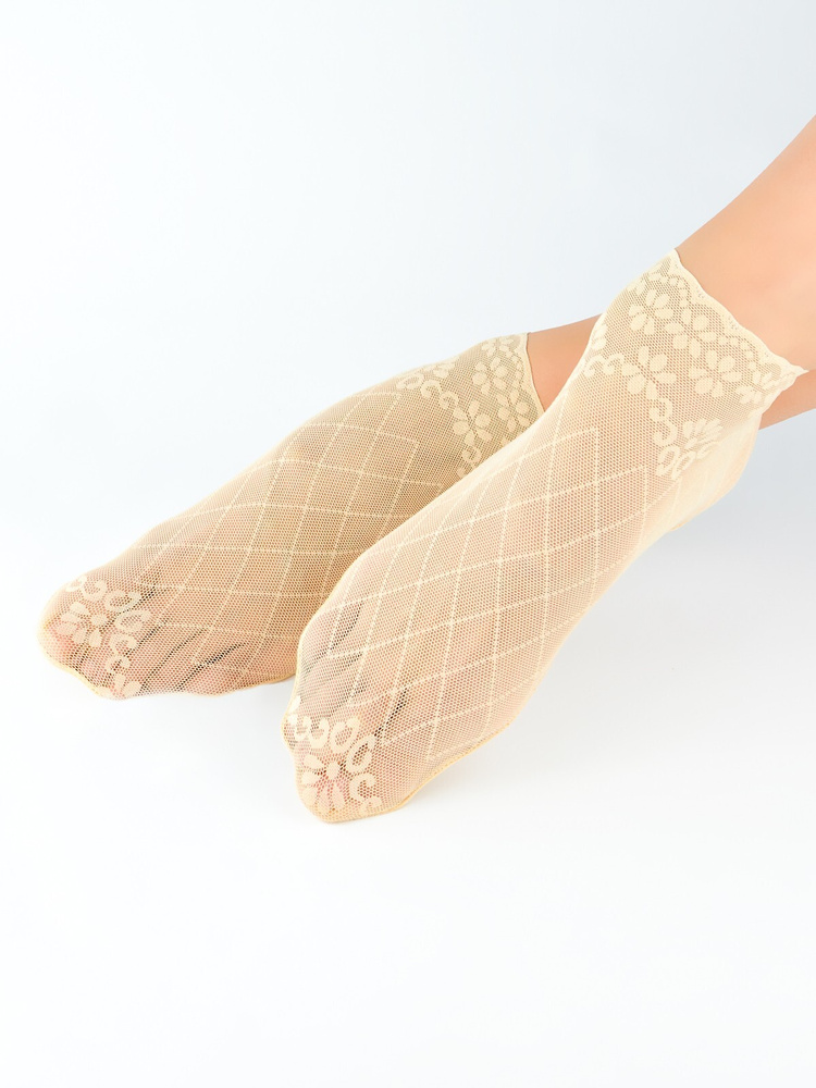 Skarpetki koronkowe SN034 Noviti bawełniana podeszwa komfort beżowe
