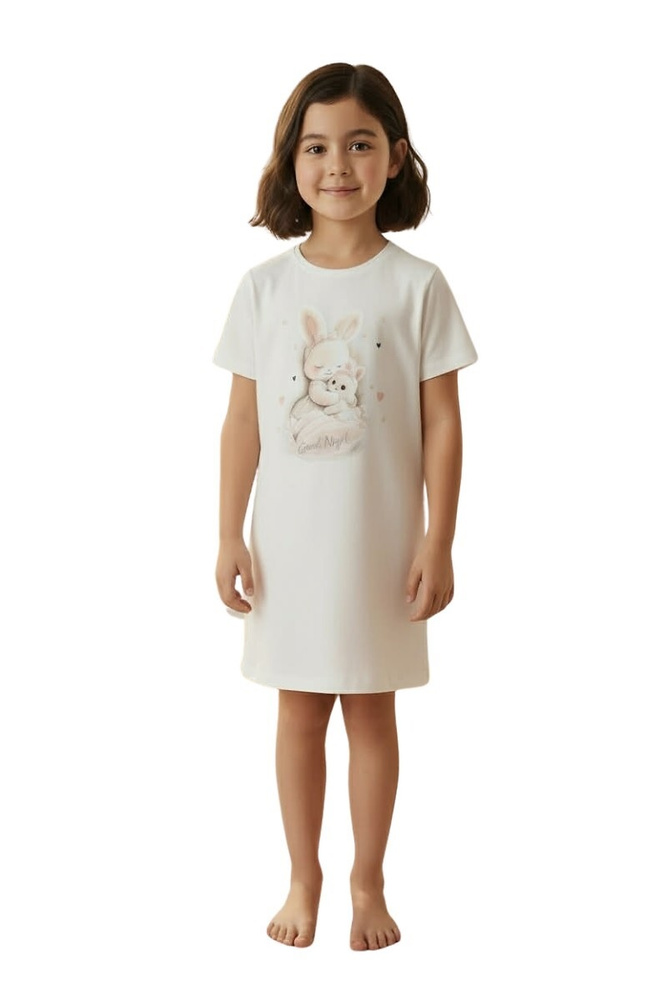 • Miękka, bawełniana koszula nocna dla dziewczynki z uroczym nadrukiem króliczków. Komfort snu i wygoda każdego dnia – wybierz sprawdzoną jakość Cornette.