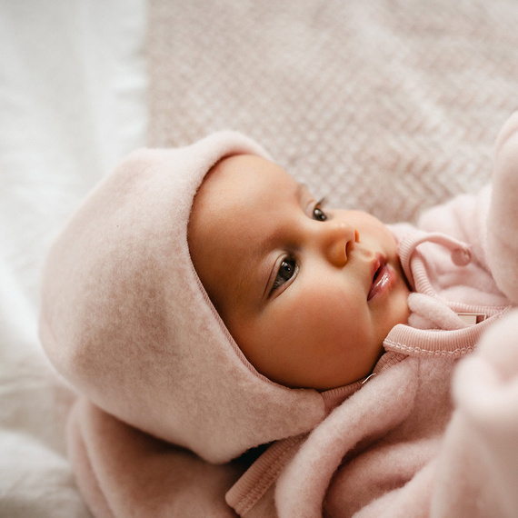 Czapka niemowlęca wiązana merino Eevi 100% wełna miękka- różowa