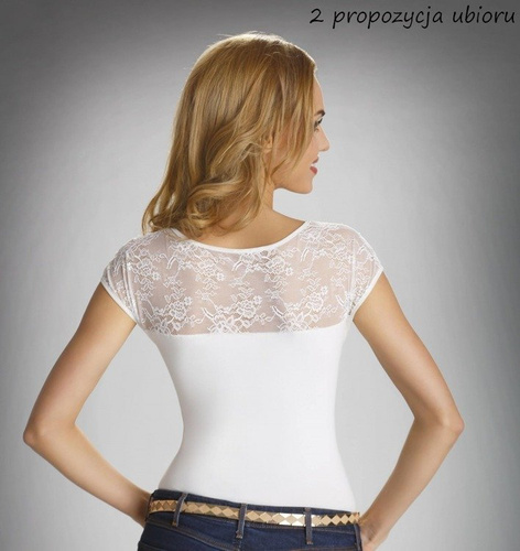 Bawełniana koszulka z dodatkiem włókien elastycznych, z krótkim rękawkiem. Dekolt i rękawy ozdobione delikatną koronką o kwiatowym motywie. Tył gładki. Firma Eldar oferuje bluzeczki damskie zaprojektowane dla Pań, które cenią sobie wygodę i elegancję. Aby spełnić oczekiwania klientek szczególnie dba o jakość materiałów, komfort oraz projekty oparte o najnowsze trendy mody. Jest to produkt najwyżej jakości!!!