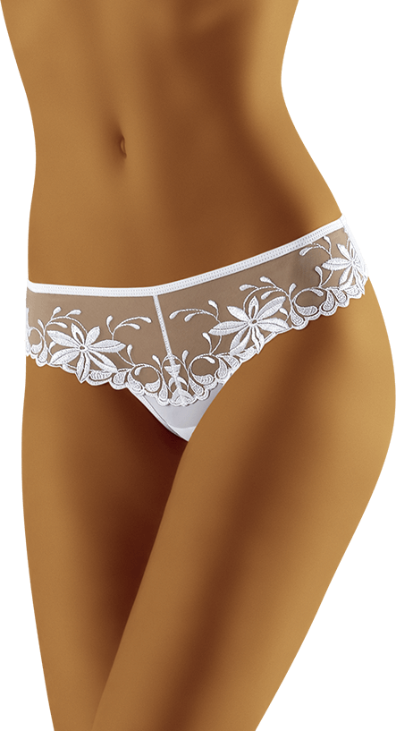 - Figi damskie z ażurowej koronki, z przodu bawełniana wstawka.