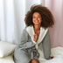 43592 Darlena Henderson dusty rose – szlafrok damski z kapturem, długi, miękki, wzorzysty