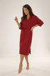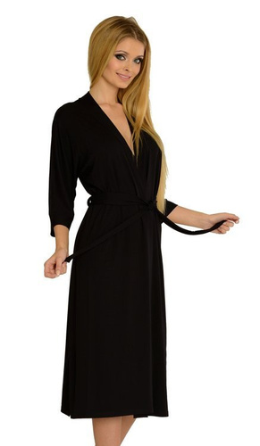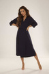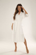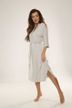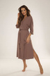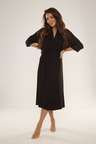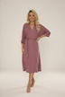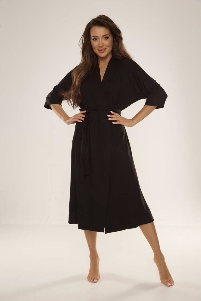 Model o dłuższym kroju doskonale otula ciało, a rękawy 3/4 i wiązanie w pasie podkreślają talię, dodając całości lekkości i kobiecości.