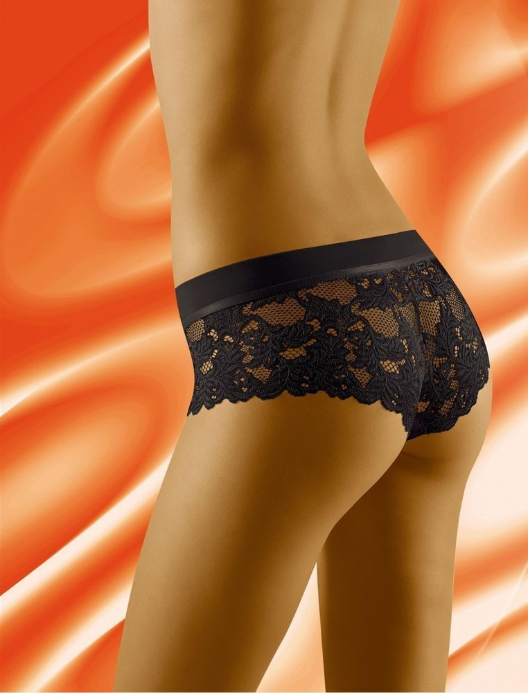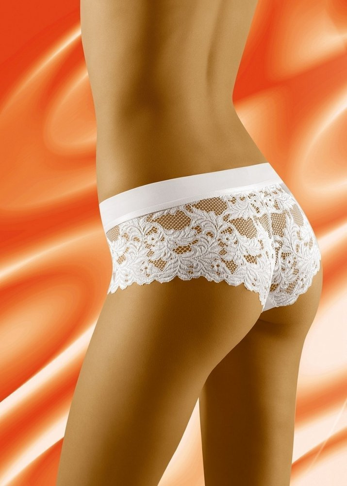 Zmysłowe szorty z miękkiej, błyszczącej koronki. Góra z gładkiej mikrofibry ozdobiona delikatną satynową kokardką.. Skład: 83% poliamid, 17% elastan.