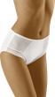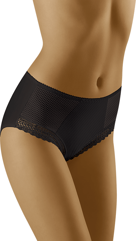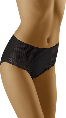 Figi damskie lekko modelujące sylwetkę - opinają brzuch, podkreślają linię talii. Wykonane z mikrofibry i efektownej ażurowej koronki. Przyjemne w dotyku i bardzo wygodne.