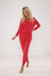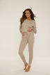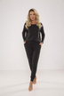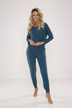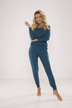 Piżama damska z wysokiej jakości wiskozy z dodatkiem elastanu. Bluza z rękawem 7/8 o luźnym i wygodnym fasonie. Do kompletu długie spodnie z kieszeniami. Pas z szeroką gumą, wygodna gumą obszytą wiskozą. Nogawki zakończone ściągaczem.