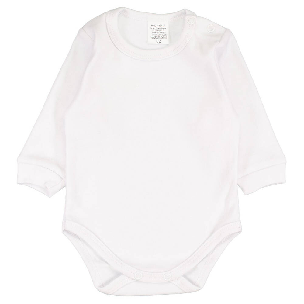 Body wykonane z mięciutkiej i przyjemnej w dotyku 100% bawełny prążkowanej lub gładkiej,zapewniającej komfort i ciepło dziecku. Klasyczne białe body bez nadruku. Zapinany na dwie napki w kroczku i jedna na ramieniu. Idealne na chłodne dni pod ubranko wierzchnie , na chrzest lub wyprawkę do szpitala.