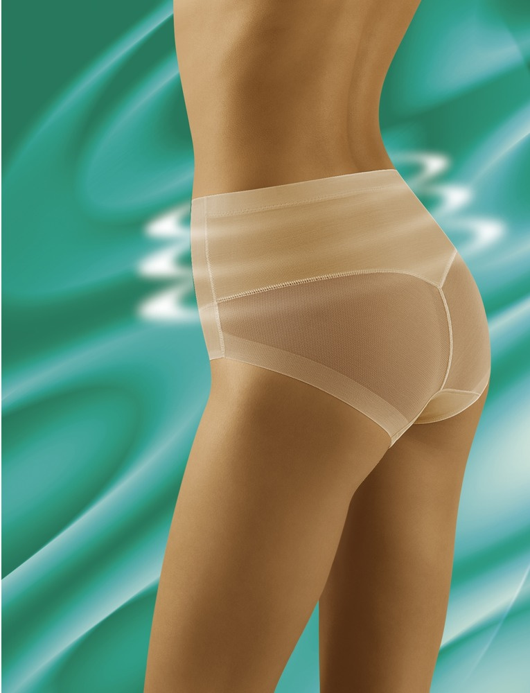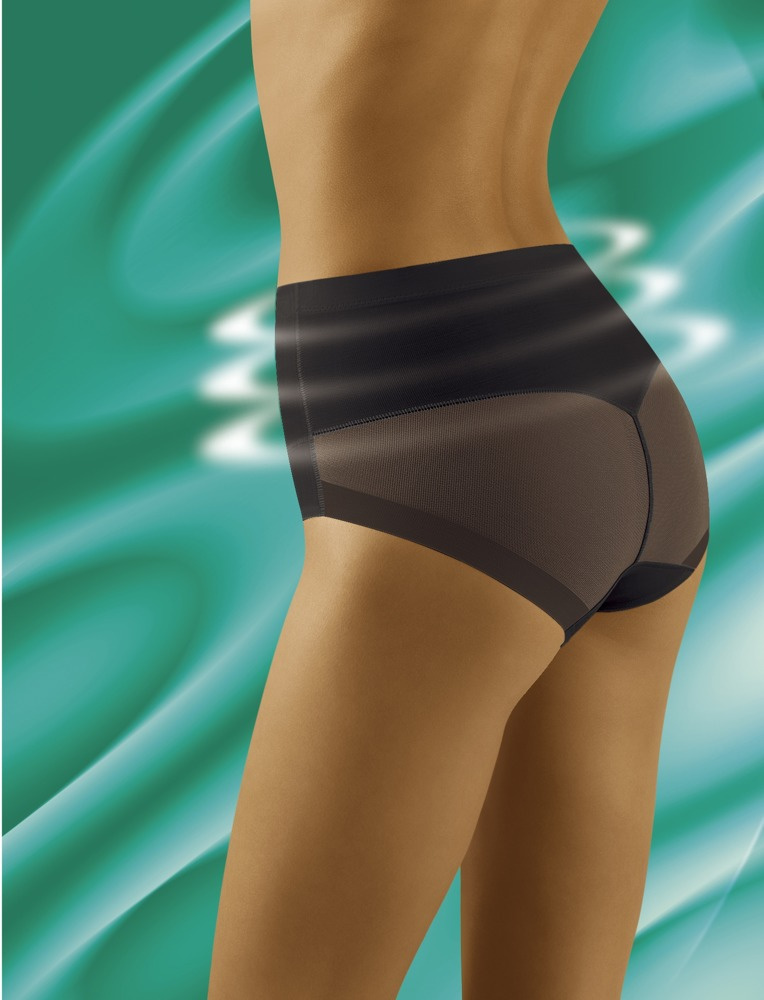 Korygujące figi z wysokiej jakości mocno opinającej dzianiny. Specjalny krój i zastosowana siateczka z tyłu zapewnia uniesienie pośladków. Płaskie wykończenia siatki i góry fig sprawia że bielizna jest niewidoczna pod ubraniem.