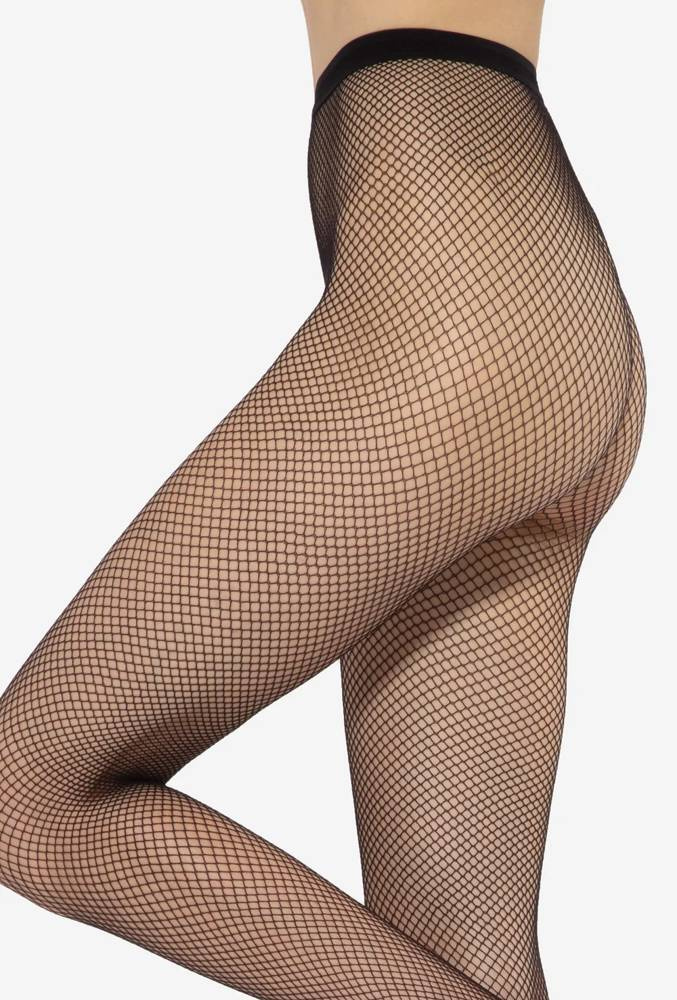 Rajstopy damskie o wzorze siateczki typu kabaretka, wykonane z przędzy typu Lycra oplatana.