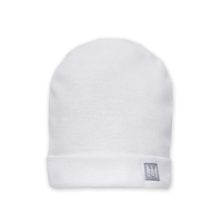 Zapytaj o produktWygodna, elastyczna, śnieżno biała czapeczka z mięciutkiej bawełny 100%, udekorowana wesołą naszywką z koroną. Dostępna w rozmiarach 50 – 68.
