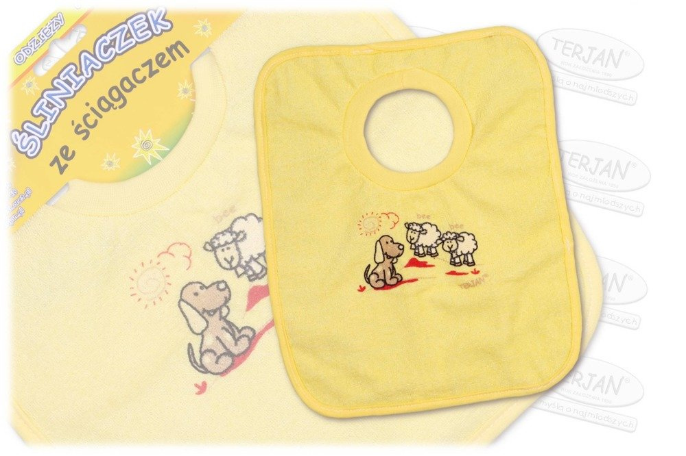 Zapytaj o produktProdukt marki Terjan wykonany jest z 100% bawełny frotte. Podszycie śliniaka to miękka nieprzemakalna ceratka, która zabezpiecza ubranie przed zabrudzeniem. Kolorowe nadruki przyciągają uwagę maluszka podczas posiłku. Śliniaczek zakładany jest przez główkę Maleństwa, zamiast tradycyjnego wiązania posiada delikatny ściągacz.