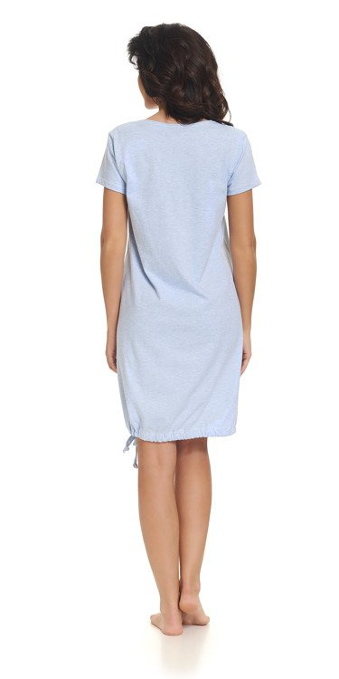 Niezwykle komfortowa i przy tym urocza koszula nocna. Model z krótkim rękawem. Dekolt okrągły z wygodnym zapięciem na zamek. Dół zakończony ściągaczem i uroczym wiązaniem z boku. Idealna propozycja na wiosenne i letnie noce.