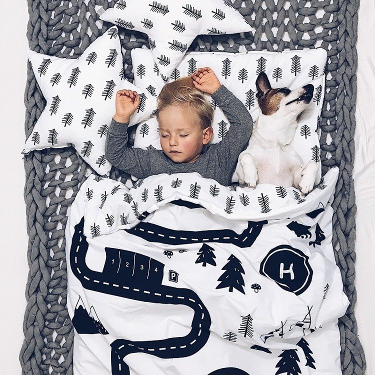 Komplet pościeli można skompletować z różnymi produktami marki Makaszka tworząc niepowtarzalną, bajecznie kolorową aranżację pokoiku Twojego Maluszka.