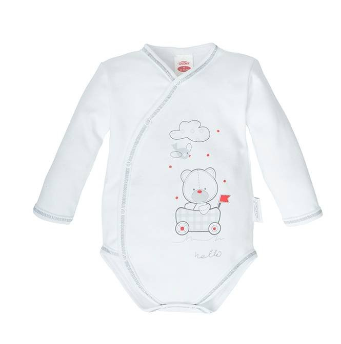 Body wykonane z bawełny organicznej. Posiadają wygodne rozpięcie na ramieniu i w kroku, ułatwiające zakładanie.
