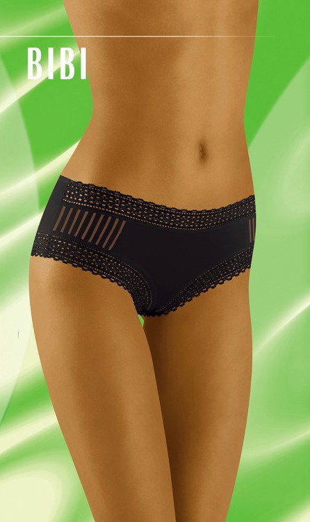 Figi damskie wykonane z mikrofibry.Ozdobione ażurową koronką.
