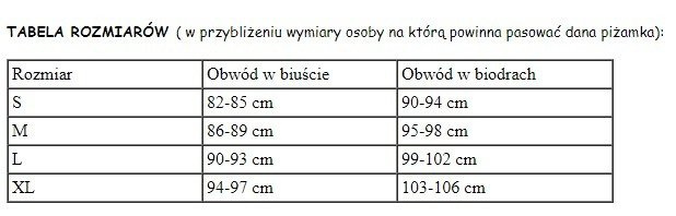 TABELA ROZMIARÓW ( w przybliżeniu wymiary osoby na którą powinna pasować dana piżamka):