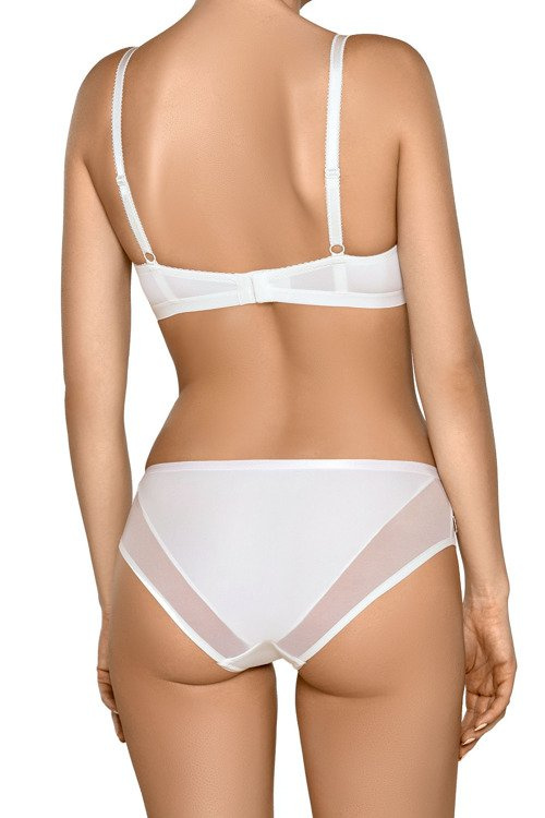 Biustonosz usztywniany, z tiulowej siateczki zdobionej efektownym haftem.