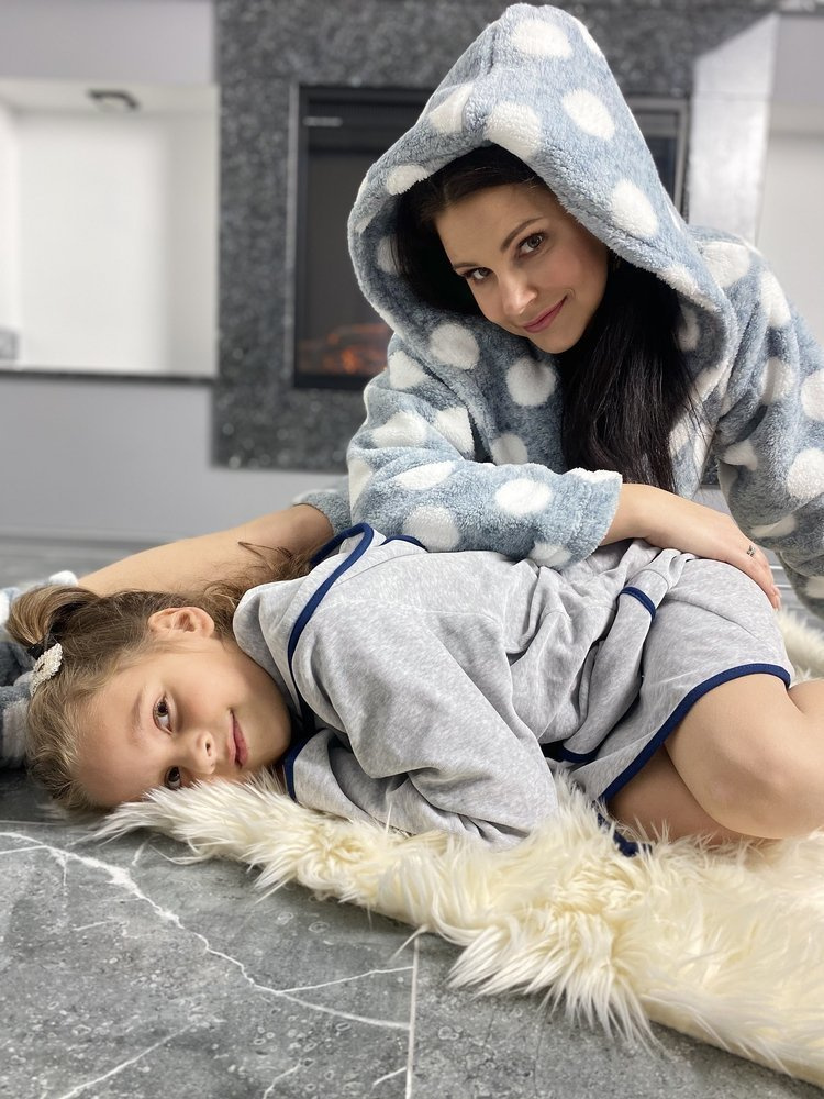 Krótki szlafrok dziecięcy z kapturem, zapinany na zamek. Wykonany z weluru. W pasie troczki do regulacji obwodu. Model ozdobiony uszkami na kapturku. Szlafrok świetnie dopasowuje się do kształtu ciała, jest niezwykle miękki i lekki. Otulenie się nim po kąpieli to sama przyjemność!