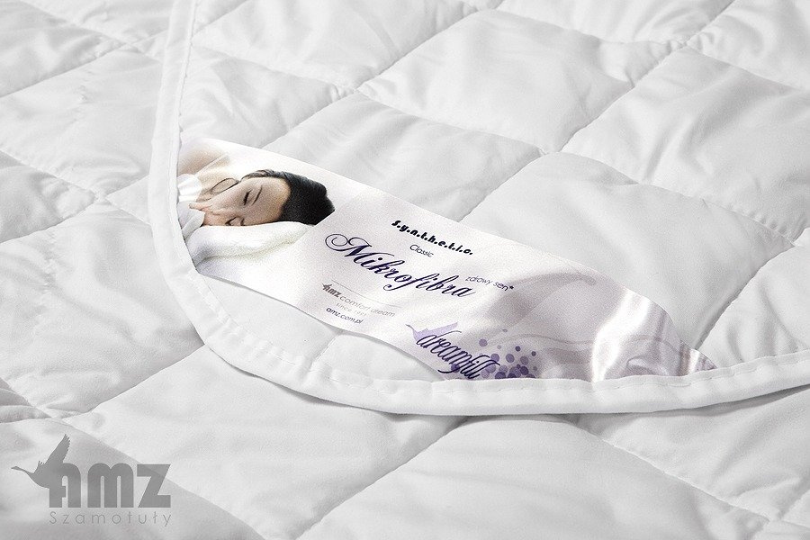 Wypełnienie kołdry: AMZ dream-fill, włókno poliestrowe spiralnie skręcone HCS (Hollow Conjugate Siliconized), wysokosprężyste, silikonowane - w postaci włókniny