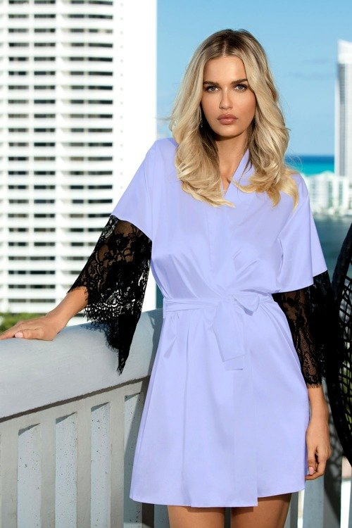 Kusząca, a zarazem elegancka satynowa podomka, która powinna się znaleźć w garderobie każdej kobiety. Połączenie rękawów o długości 3/4 z szeroką koronką dodaje lekkości i kobiecości. Szlafrok zalotnie wiązany w pasie, wykończony dołem na półokrągło – romantyczny i jednocześnie niesamowicie zmysłowy.