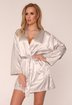 Podomka wykonana z lejącej satyny, o komfortowym kroju jest obowiązkowym elementem garderoby eleganckiej kobiety i sprawdzi się w każdej sytuacji. Rękawy dają możliwość noszenia na dwa sposoby: podwinięte mankiety lub proste. Wszystko zależy od tego jaki masz nastrój. Ta krótka satynowa podomka posiada pasek, który seksownie podkreśla talię.