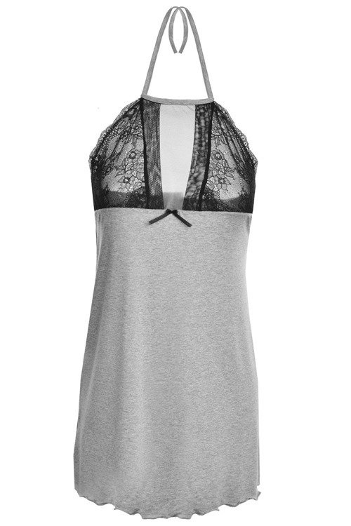 Wiskozowa haleczka. Góra halki uszyta z delikatnej koronki podszyta delikatnym tiulem oraz dwoma zakładkami pionowymi nadająca zmysłowości. Wiązana na szyi.