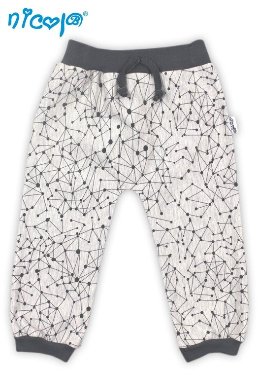 Wykonane ze 100% bawełny, bezpiecznej dla skóry dziecka. Wygodne szaro-grafitowe spodenki, szyte od rozmiaru 56 do 80. Gumka w pasie zapewnia odpowiednią przyczepność, jednocześnie zachowując komfort dziecka.