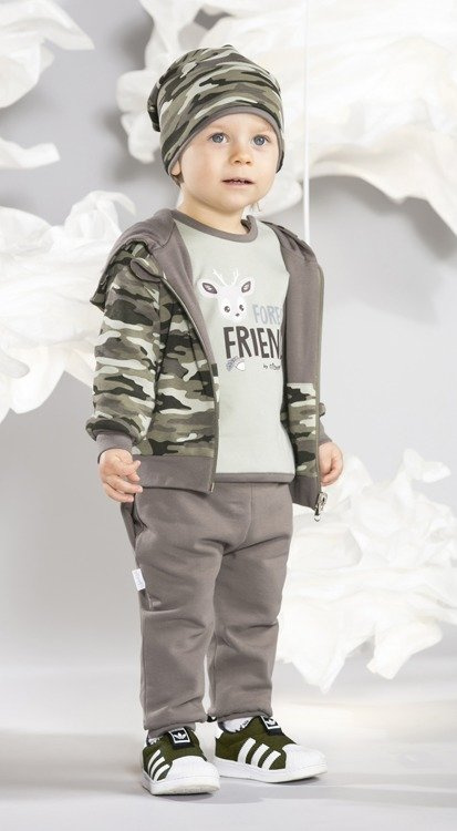 Kurtka z kolekcji "JELONEK". Wykonana z miękkiej i przyjemnej w dotyku bawełny. Krój umożliwia całkowite rozpięcie. Zapinana na zamek bezniklowy. Wykończona miękkimi ściągaczami. Wyprodukowana w Polsce. Model można nosić dwustronnie.