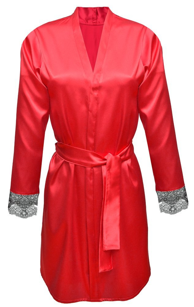Podomka wykonana z lejącej satyny, o komfortowym kroju jest obowiązkowym elementem garderoby eleganckiej kobiety i sprawdzi się w każdej sytuacji. Efektowne rękawy zakończone śliczną, delikatną koronką. Ta krótka elegancka satynowa podomka posiada pasek, który seksownie podkreśla talię.