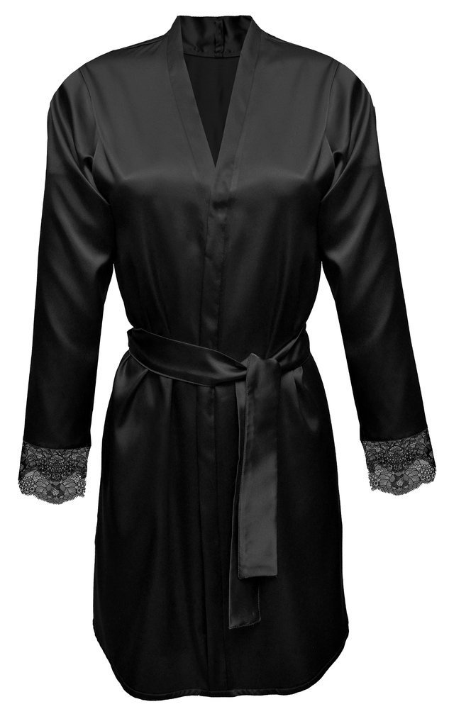 Podomka wykonana z lejącej satyny, o komfortowym kroju jest obowiązkowym elementem garderoby eleganckiej kobiety i sprawdzi się w każdej sytuacji. Efektowne rękawy zakończone śliczną, delikatną koronką. Ta krótka elegancka satynowa podomka posiada pasek, który seksownie podkreśla talię.