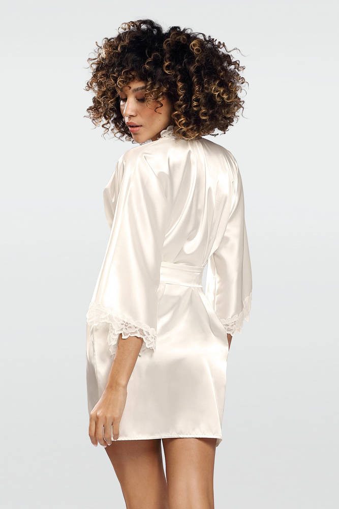 Przyjemna satynowa podomka o komfortowym kroju jest obowiązkowym elementem garderoby eleganckiej kobiety i sprawdzi się w każdej sytuacji. Rękawki kimonowe wykończone delikatną w dotyku koronką. Ta krótka elegancka satynowa podomka posiada pasek, który seksownie podkreśla talię. Przód podomki ozdobiony jest elegancką koronką.
