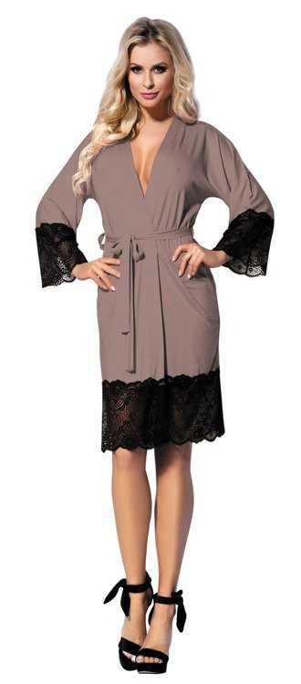 Przyjemna wiskozowa podomka. Rękawy oraz dół podomki wykończone elegancką, delikatną w dotyku koronką. Do podomki dołączony jest pasek, który z pewnością podkreśli talię.