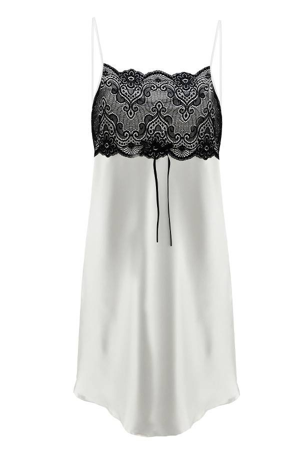 Zmysłowa satynowa haleczka, góra uszyta z koronki, podszyta satyną.