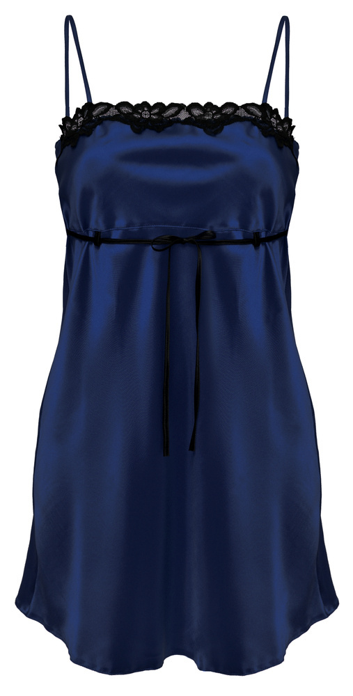Zmysłowa satynowa haleczka, z ozdobnym przodem z czarnej koronki, pod biustem wiązana kokardką.