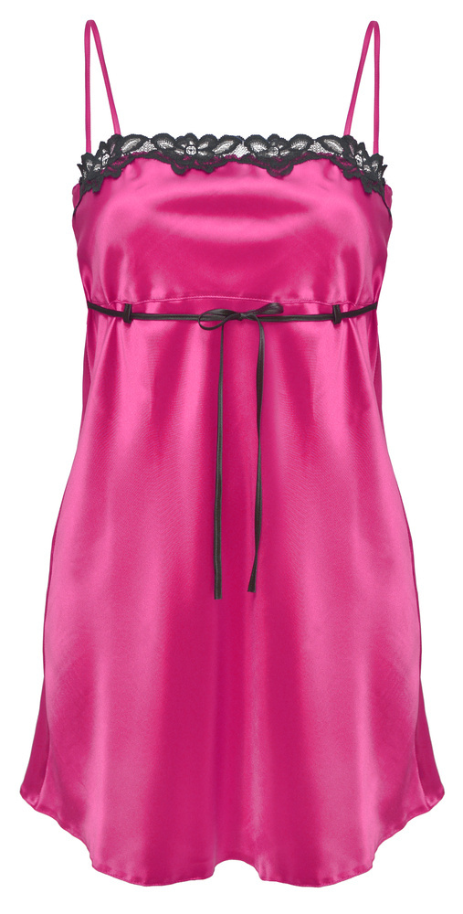 Zmysłowa satynowa haleczka, z ozdobnym przodem z czarnej koronki, pod biustem wiązana kokardką.