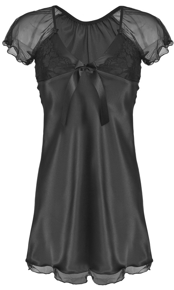 Zmysłowa satynowa haleczka z krótkim rękawem, profilowane miseczki z haftowanej koronki podszyte satyną dodają halce powabnego, romantycznego wyglądu, z przodu przyozdobiona kokardką.